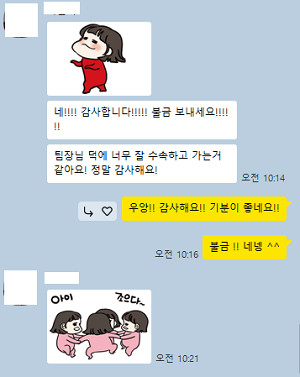 김효진 팀장님! 도착 후 연락 드린다고 했는데 월요일에 보낸다는걸 시차를 깜빡했네요..! 잘 도착했습니다 ㅎㅎ 아직 낯선 것 투성이지만 한 번 적응 잘 해보도록 하겠습니다!