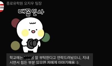 팀장님! 잘 챙겨주셔서 너무 감사드려요!! 덕분에 잘 다녀올 수 있을 거 같아요 :) 응원 너무 감사해요. 열심히 공부하고 잘 놀고 오겠습니당😆😄