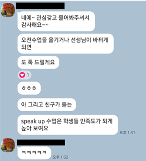 박미선 팀장님 덕분에 픽업 기사님 만나서 체크인도 잘 하고 반 배정도 잘 받고 어제 수업도 들었어요! 좋은 친구들도 많이 사겼어요 !! ☺