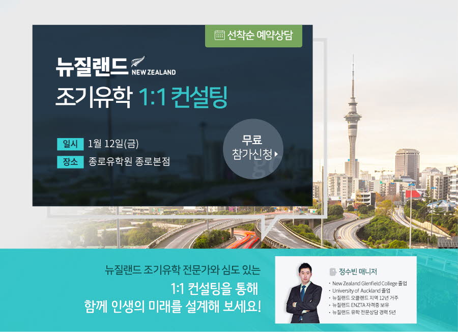 36년 전통 유학기업 종로유학원은 이러한 추세를 반영해 뉴질랜드 전문가가 들려주는 '뉴질랜드 조기유학' 이라는 주제로