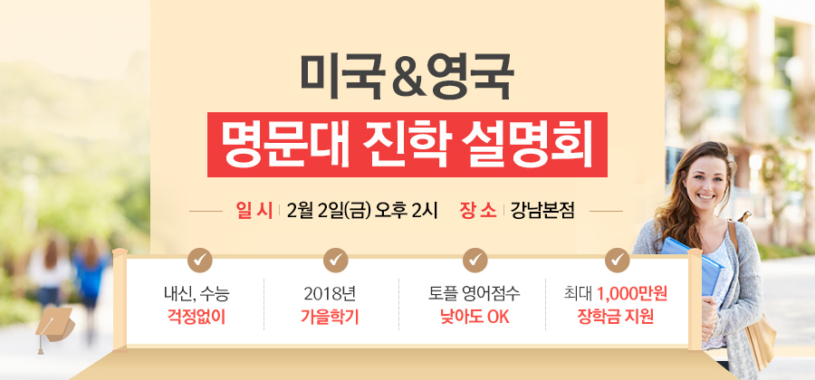 미국 & 영국 대학 진학 정보를 원하는 누구나 무료로 참가 가능하며,