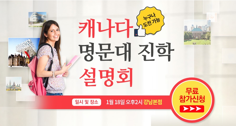 1월 18일(금) 오후2시 강남본점에서 캐나다 명문대 진학 설명회"를 개최합니다.