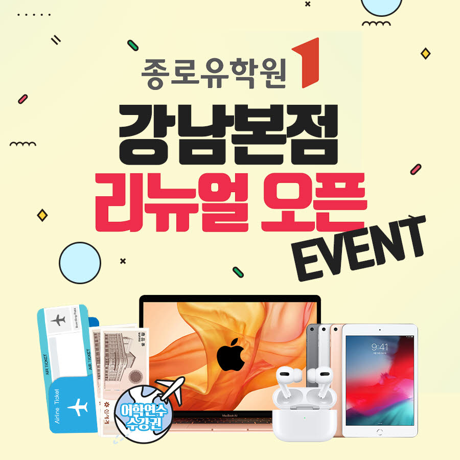 38년 전통의 유학 전문 기업 종로유학원이 강남본점 리뉴얼 오픈을 기념해 이벤트를 실시한다고 밝혔다.