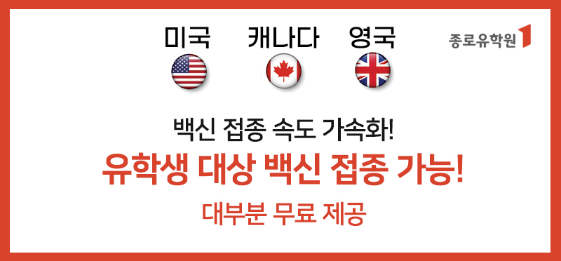 미국, 캐나다, 영국은 백신 접종 속도가 가속화됨에 따라, 유학생 대상으로 백신 접종이 가능하고 대부분 무료로 제공됩니다.