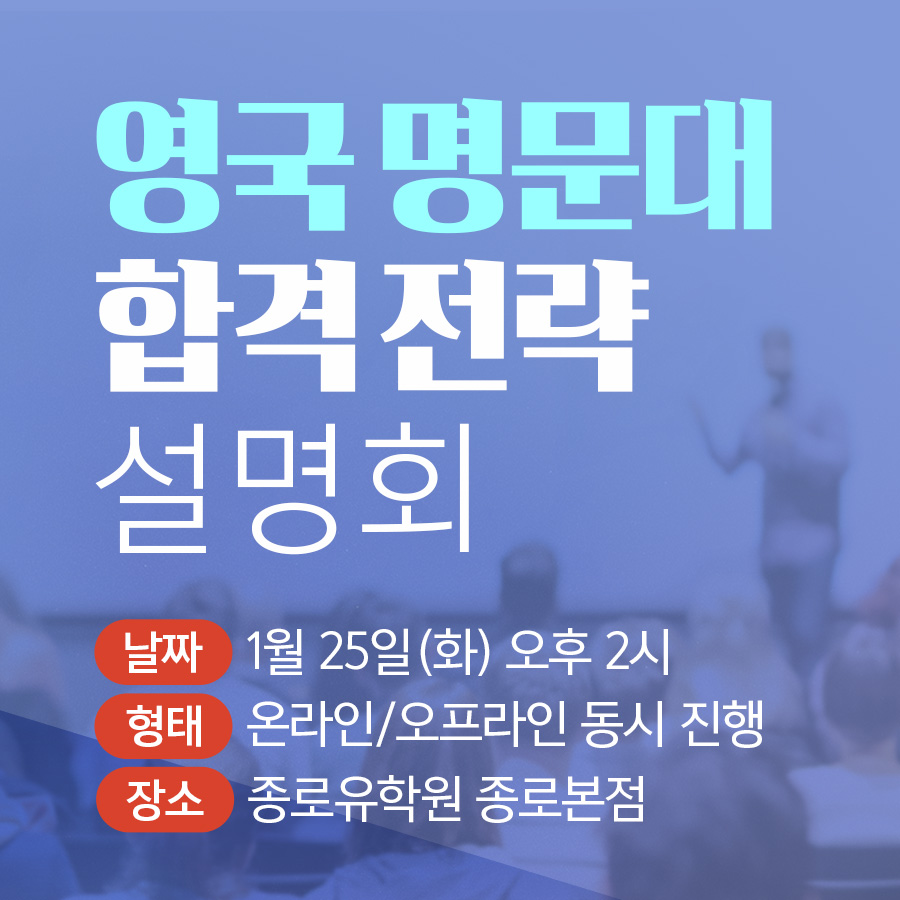 40년 전통의 유학 전문 기업 종로유학원이 오는 1월 25일(화)에 ‘영국 대학 합격전략 설명회’를 개최한다.