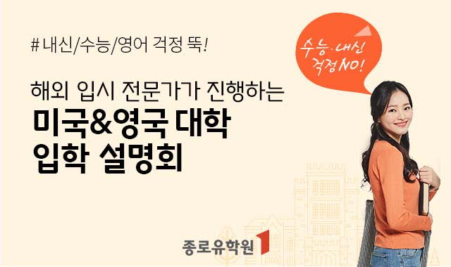 미국&영국 대학 입학 설명회는 사전 신청제로 진행돼 조기 마감될 수 있다. 설명회 관련 자세한 내용은 종로유학원 홈페이지에서 확인 가능하다.
