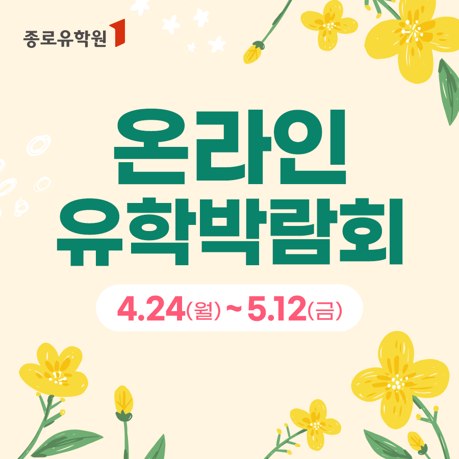 오는 5월 12일(금)까지 개최하는 ‘온라인 유학박람회’에 대한 자세한 내용은 종로유학원 홈페이지에서 확인할 수 있다.