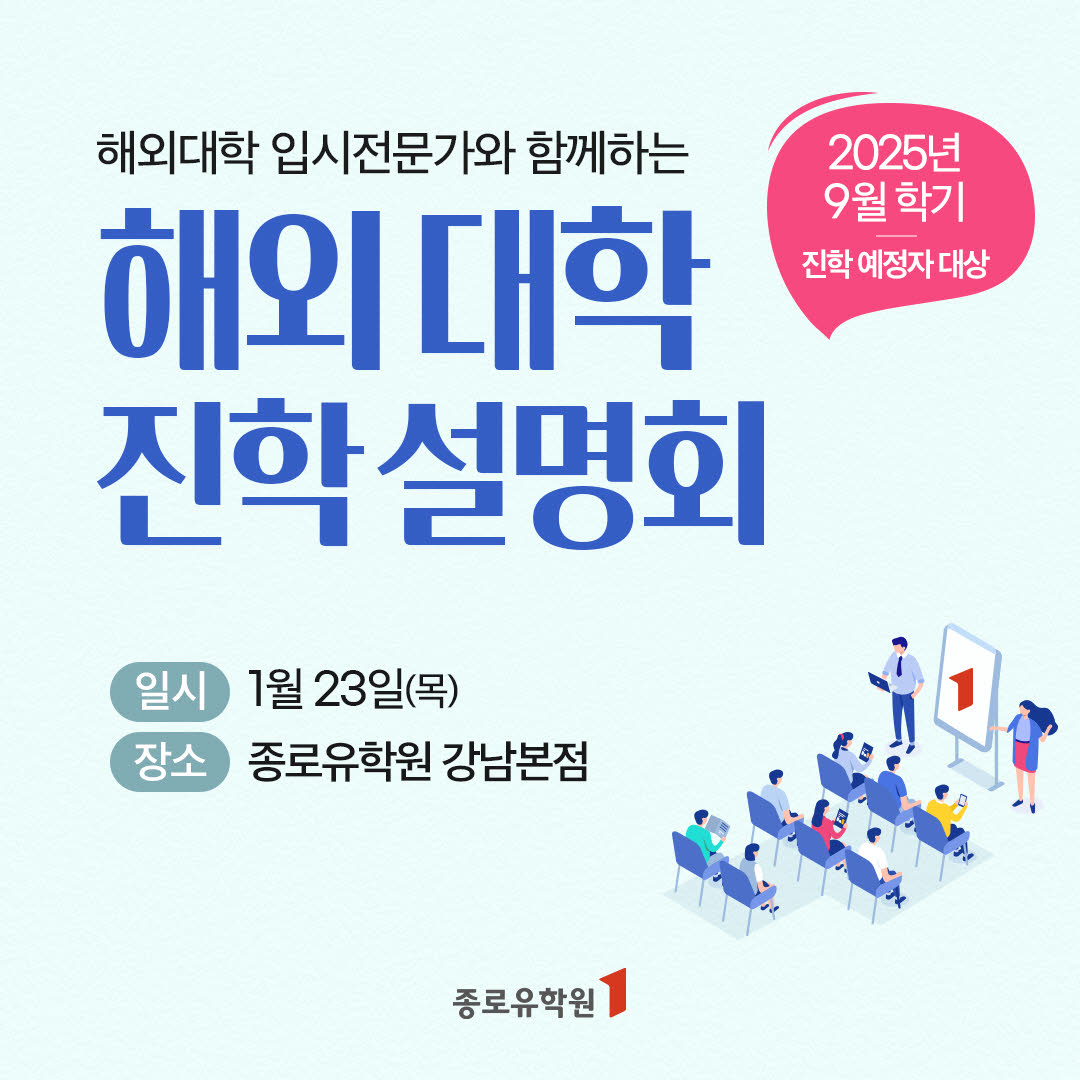 설명회는 사전 예약제이며 종로유학원 홈페이지를 통해 신청할 수 있다.