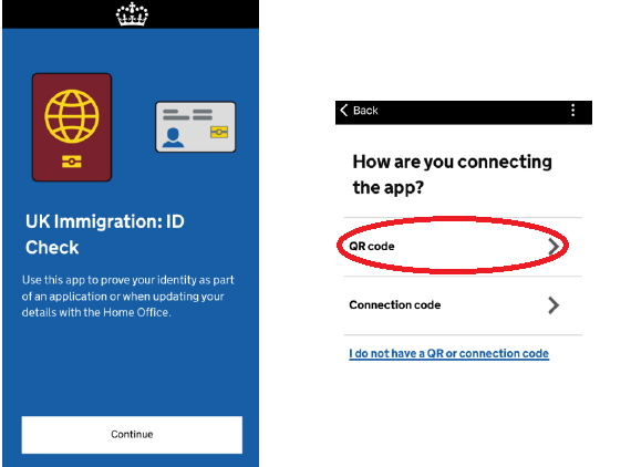 이후 핸드폰으로 UK Immigration ID Check 앱을 다운로드한 후 캡처해 둔 QR 코드를 핸드폰으로 인식 시켜 준 후