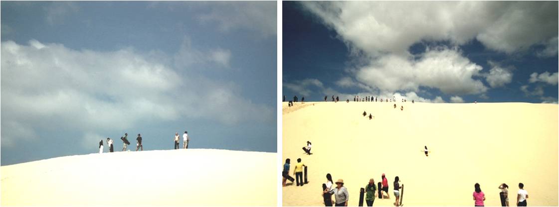 모래사막을 가로질러 샌드보딩장으로 이동하게 됩니다.