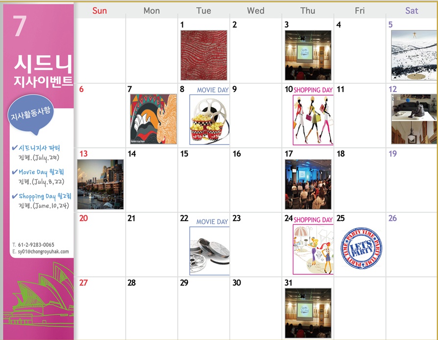 호주 [시드니] 7월 Activity Calendar