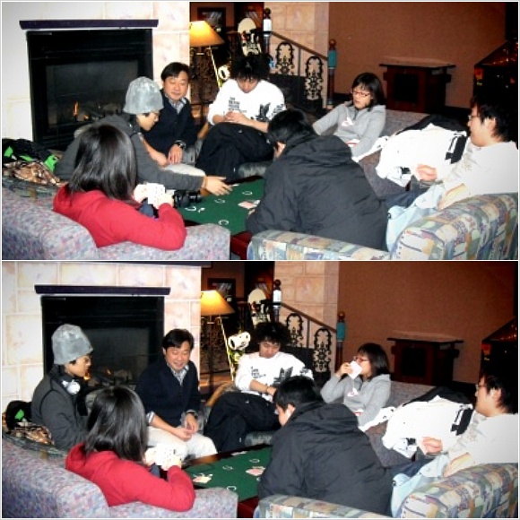 중간 중간 언 몸을 녹이려 Cabin에 모여서 카드게임^^ 따뜻해효^0^