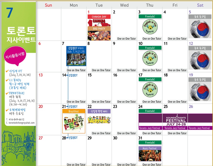 캐나다 [토론토] 7월 Activity Calender