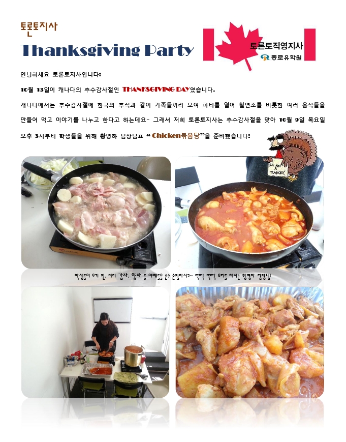 안녕하세요, 토론토지사입니다. 10월 13일이 캐나다의 추수감사절인 THANKSGIVING DAY 였습니다...