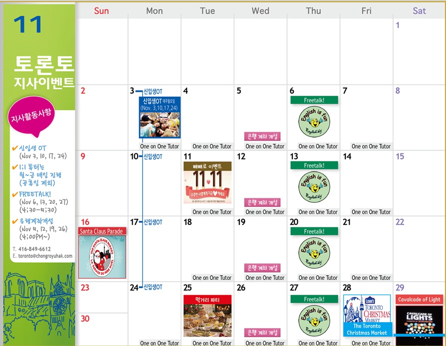 토론토의 연말 행사들과 함께할 토론토 지사의 11월 이벤트를 소개하겠습니다. ^^