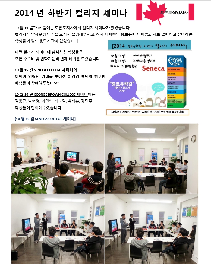 캐나다 2014년 컬리지 세미나 |후기!!