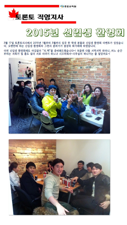 캐나다 [토론토] 토론토 지사 신입생 환영회 있었어요~