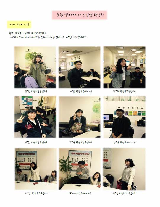 3월달 입국회원들을 위한 신입생 환영회를 가졌습니다!