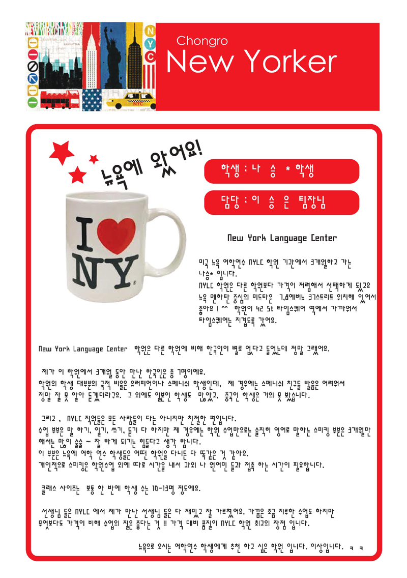 미국 뉴욕 어학센터(NYLC) 후기