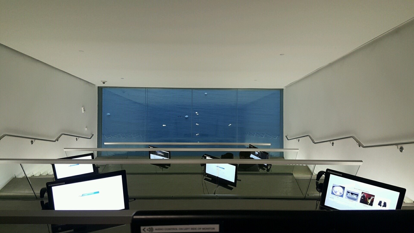 ICA는 4층까지 있는 건물이고, 갤러리는 4층에 위치해 있습니다. 또한 3층에는 극장, 2층에는 디지털 스튜디오가 있습니다. 4층에서 작품들을 감상하고 있으면 아래 사진과 같이 바다를 보면서 앉아서 쉴 곳도 있고, 가족 도서관이라 하여 책을 빌려 읽을 수 있도록 되어있습니다.