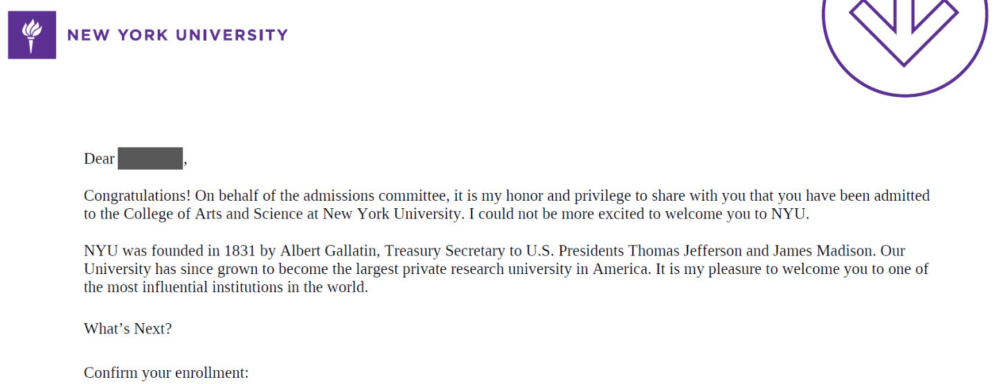 ※ 아래 내용은 New York University 에 합격한 정*현 님이 직접 작성한 후기로, 보내주신 사진과 함께 업로드 하였습니다.