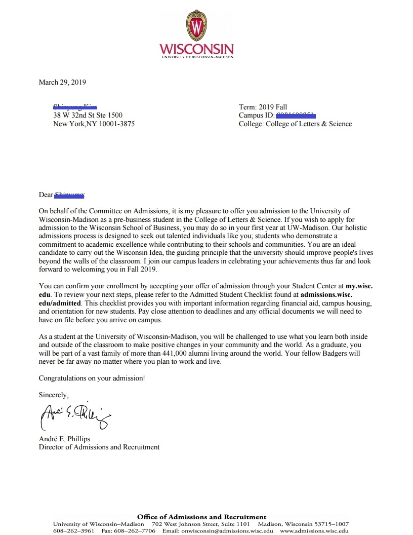 University of Wisconsin-Madison의 Accounting전공으로 2019년 가을 학기에 합격 하였습니다!