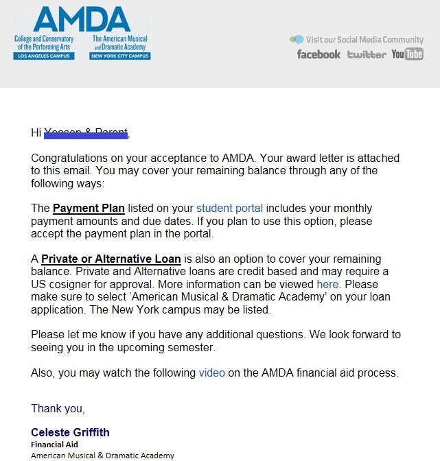합격을 축하 드립니다! The Integrated Program으로 2019년 봄 학기에 합격 하였습니다.
