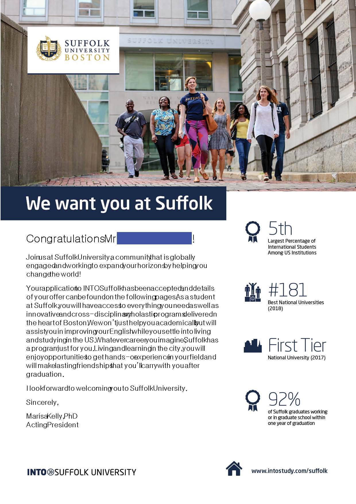 1 한국에서, 2 미국에서, 3 캐나다에서 공부한 학생인데요. IELTS 성적이 5, 학교 성적이 좋지않아 Pathway 진행한 케이스 입니다. INTO Suffolk Business과정으로 신입생으로 합격 하였습니다.